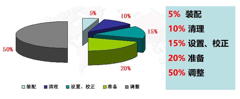 最初使用在汽車制造廠,以達(dá)到快速的模具切換(Exchange of Dies);豐田現(xiàn)場(chǎng)人員經(jīng)過(guò)長(zhǎng)期探索,將沖壓工序沖床模具裝換調(diào)整所需時(shí)間,從1945年至1954年的3小時(shí),縮短為1970年以后的3分鐘,現(xiàn)在,豐田汽車公司利用設(shè)備快速裝換調(diào)整SMED法,所有大中型設(shè)備的裝換調(diào)整作業(yè)均能在10分鐘之內(nèi)完成。企業(yè)產(chǎn)品切換時(shí)間由4小時(shí)縮短為3分鐘。