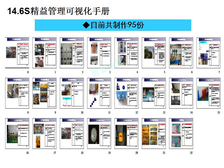 深圳智泰下屬6S咨詢公司在國(guó)內(nèi)對(duì)不同行業(yè)推進(jìn)6S管理,98%以上取得非常滿意的效果,智泰專業(yè)團(tuán)隊(duì)三天為企業(yè)打造成功6~8個(gè)標(biāo)桿車間,6S咨詢公司快速為企業(yè)達(dá)成6S管理目標(biāo)而努力奮斗,企業(yè)要想成為行業(yè)的標(biāo)桿,必須持續(xù)推進(jìn)現(xiàn)場(chǎng)管理,比如6S或TPM管理等,現(xiàn)場(chǎng)管理好的企業(yè)不一定是標(biāo)桿企業(yè),但標(biāo)桿企業(yè)的現(xiàn)場(chǎng)管理一定是優(yōu)秀的。附件為企業(yè)6S管理推進(jìn)總結(jié)內(nèi)容,請(qǐng)查閱:
