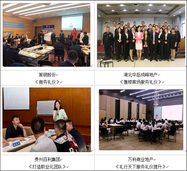 ※曾為葛洲壩集團開展《國際禮儀》、《企業(yè)實戰(zhàn)商務(wù)禮儀》課程,已返聘3期,持續(xù)返聘中……