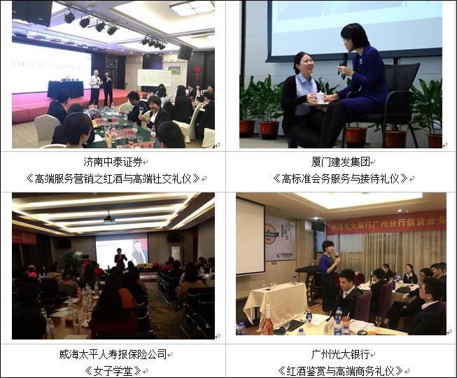 青島日報社、青島電視臺、青島人民廣播電臺、青島新聞網(wǎng)、帆船賽世界杯、青島市海洋節(jié)、青島國際帆船、中國石化、中國銀行、招商銀行、勞斯萊斯、賓利、奔馳、本田、海信集團、海爾集團、一汽大眾上海市人民政府機關(guān)企事業(yè)單位、青島市政府、青島市體育局、百名海外院士青島行、克利伯環(huán)球帆船賽青島站、多家國企、民企、上市、跨國企業(yè)及政府單位的危機公關(guān)和高端服務(wù)禮儀特聘講師/顧問。