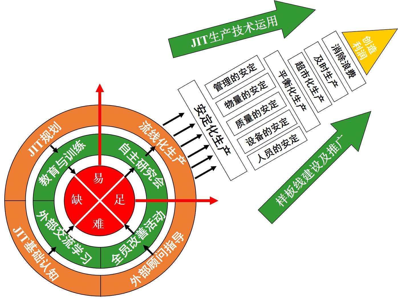 精益生產(chǎn)實(shí)施過程全貌: