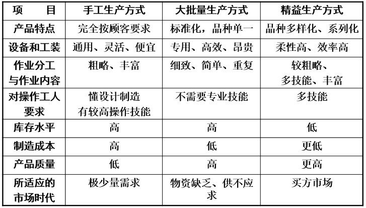 三種生產(chǎn)方式比較: