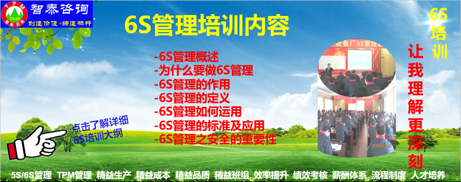 智泰咨詢機構(gòu)提供專業(yè)的5S管理,6S管理,TPM管理,精益生產(chǎn)管理的咨詢與培訓(xùn)服務(wù);我們有一批從事企業(yè)管理咨詢20年以上的資深顧問,他們行業(yè)經(jīng)驗豐富,成功案例多,是真正落地的咨詢機構(gòu)!...