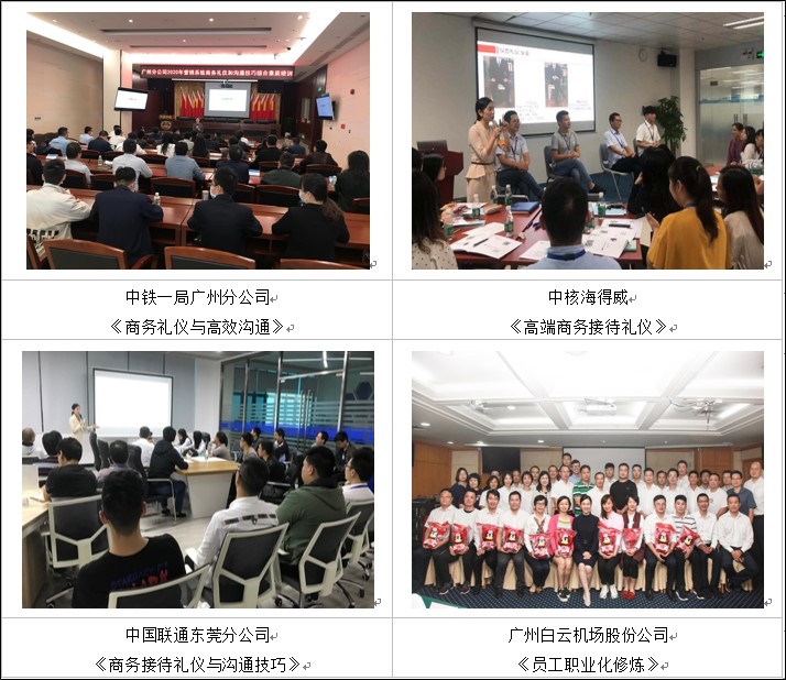 ▲ 曾為佛山藍德堡公司進行《銷售人員商務接待禮儀》課程培訓,針對學員崗位實際情況,將職業(yè)素養(yǎng)、思維心態(tài)加入到禮儀課程,優(yōu)化課程結構,讓學員具備由內而外清晰知曉:如何做才是對客戶最尊重的行為表達。