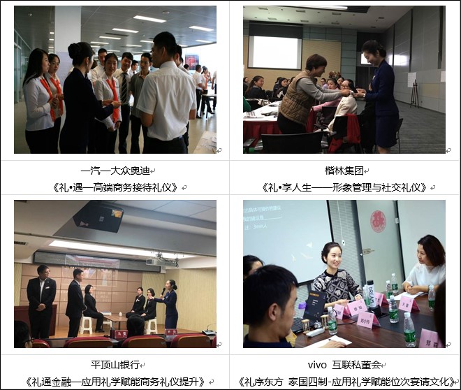 →授課累計近千場,給近10萬名企業(yè)員工講授《禮贏商運(yùn)》、《禮譽(yù)人生》、《禮贏職場》等應(yīng)用禮學(xué)系列課程,深受學(xué)員喜愛。