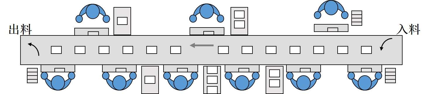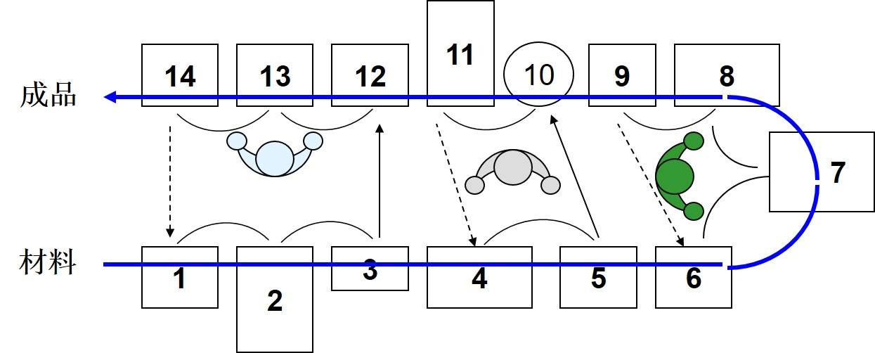 單元化生產(chǎn)布局,是精益生產(chǎn)的一個(gè)模塊,是當(dāng)代最新、最有效的生產(chǎn)線設(shè)置方式之一,為日本以及歐美企業(yè)所廣泛采用。這種方式使得小批多種生產(chǎn)殘酷環(huán)境下的生產(chǎn)線幾乎比流水線效果還好,因此被譽(yù)為“看不見(jiàn)的傳送帶”。
